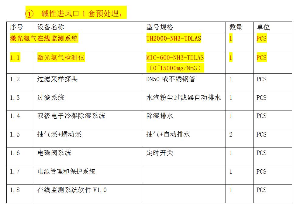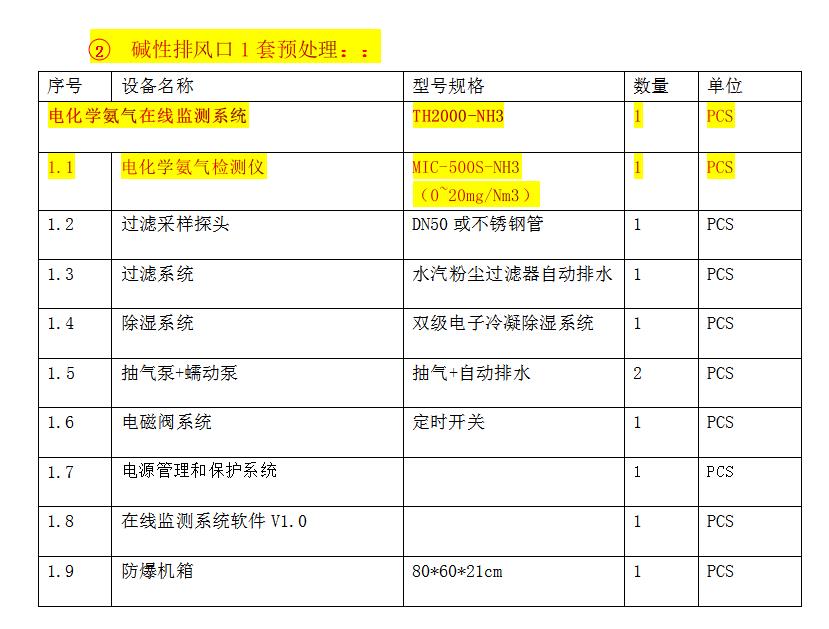 在線監(jiān)測預處理系統(tǒng) 1套(內含對應氣體檢測儀1臺)
