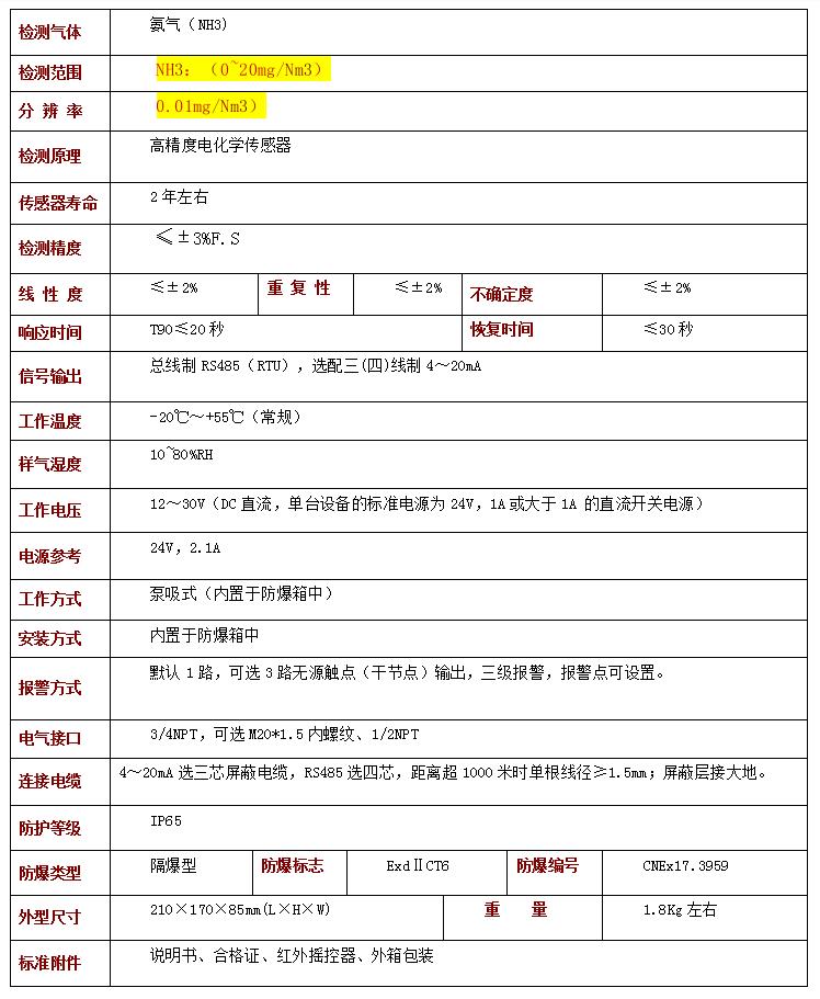 ★過濾前工況:氨氣檢測儀最大量程要求15000mg/Nm3,檢測點:壓力3.5kpa,溫度:75度,濕度比較大,含水量90%RH。務必需要防爆裝置。